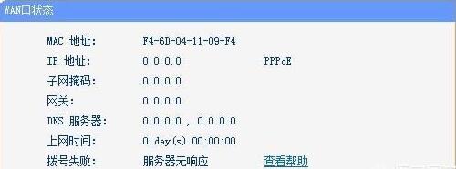 可以在浏览器中输入上述的网关地址、用户名、密码登录路由器;在路由器的WAN口状态中查看WAN口拨号状态,下图表示拨号失败。