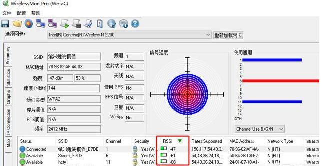 先来看看如何测试无线信号的强弱,以及增强信号的方法如何实现吧。信号测试在这里给大家介绍一款比较实用的无线信号测试工具,WirelessMon。该软件实用起来比较简单、方便,直接打开即可,在RSSI选项中,查看当前无线信号强度,如果超过-75db,则表示型号强度太差,需要补强。