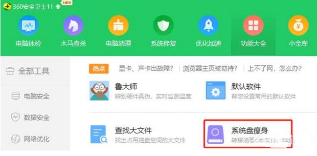 可以通过三方软件对系统盘尽进行瘦身,删除系统多于的插件、垃圾等,使用360安全卫士,该功能可以自动对系统进行扫描,删除不必要的垃圾,卸载多于的软件,更改软件默认的安装盘符,尽量不要安装到系统盘。