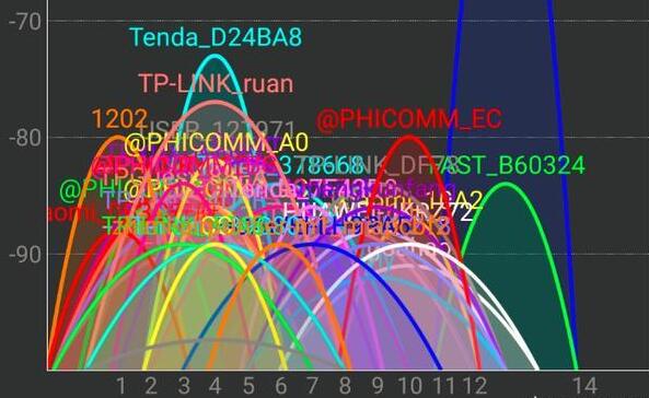 白天无线设备较多,产生的同频干扰比较严重,严重的如上图所示,晚上会关闭一部分无线设备,上下层、左右邻居之间的同频干扰会降低。