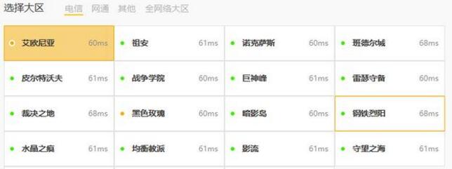 为了确保游戏质量,尽量选择电信区的游戏服务器及进行登录,不要选择联通端的服务器,否则会出现延时较高、频繁掉线的问题;同样,联通宽带用户同样选择联通区的游戏服务器。