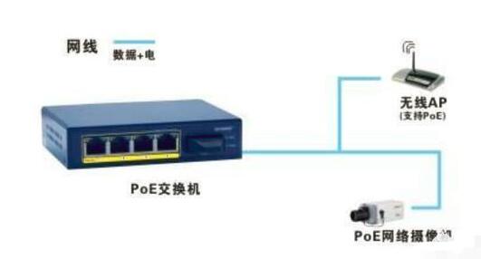POE交换机是指在利用原有的网络结构,不改变组网的情况下通过网线提供供电,端口的输出功率在30W左右,可以对25W以下功率的设备进行供电,常见的有视频摄像头、无线AP等设备进行供电。