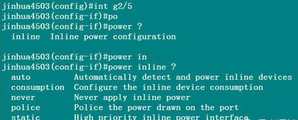 下图是以思科交换机为例,看看如何关闭POE供电。首先,进入到需要关闭POE供电的端口;通过输入命令 poewr inline never命令关闭端口的POE供电功能;交换机支持通过“?”的方式提示后续的命令,方便查找命令。xw20181001xunji