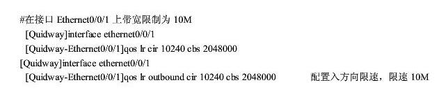 进入交换机后进入到系统视图模式---全局模式下,使用qos命令来配置,网络带宽的10M、100M的单位是bps(既bit/s),而我们通常说的100M大小的文件,这里的单位是Byte。qos lr 命令用来在接口出方向的限速。