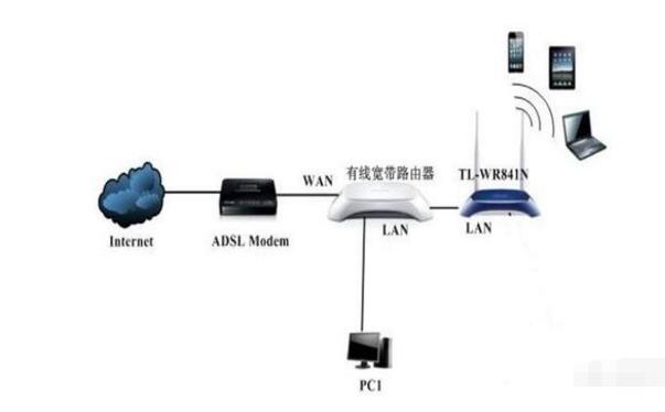 一种是通过连接副路由器的WAN口,副路由器当做二级路由器使用;