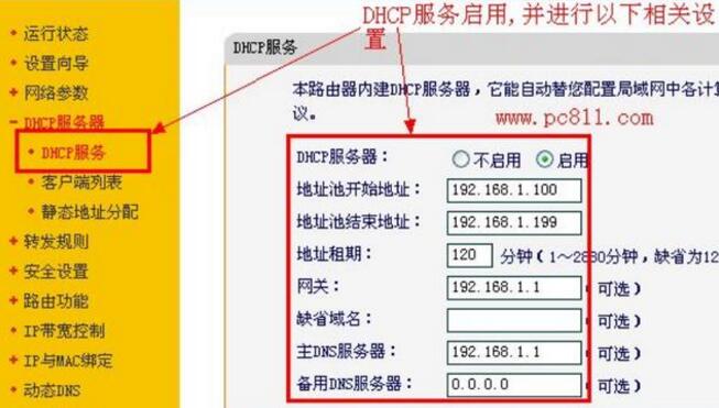 动态ip的获取需要一个很关键的第三方服务,就是dhcp服务器,在家庭的网络里,无线路由器、光猫起到了dhcp服务器的功能,给家庭的用网终端自动分配IP地址。比如手机上网时,首先发出一些广播数据,找到局域网内的dhcp服务器,dhcp服务器收到广播数据后,向手机提供一个可用的ip地址,还包括了网关地址、dns地址等。在数据的传送过程中是通过mac地址标识对方的。下图显示了某无线路由器的dhcp功能的相关配置,配置了地址池、网关、DNS地址等等。