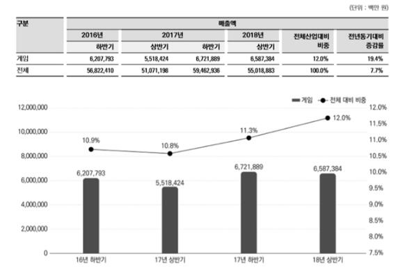 根据韩国内容振兴院28日发布的“2018年上半年内容产业动向分析报告书”称,今年韩国游戏产业销售额占整体内容产业的比重为12%左右。该比重,在去年上半年环比下降之后,到今年上半年为止出现了持续增长。