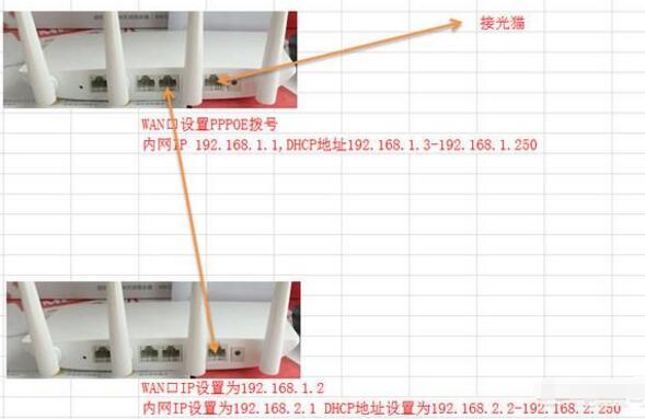 当然也可以使用有线的方法,将主路由器a,和路由器b,进行连接,主路由器开启,Dhcp服务,设置IP地址范围,通过主路由器的lan接口,连接路由器b,登录无线路由器b,获取网络的方式,设置为静态IP,IP地址范围设置为,主路由器a,的dhcp IP地址范围,并且注意DNS服务器的设置,当然,是用两个不同的无线路由器,并且都可以正常上网的状态下,需要修改,搜索到的两个WIFI信号也不相同。