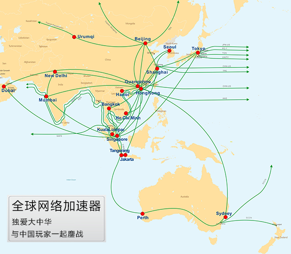 全球代理使用的是定向加速技术,专门针对游戏程序加速,相比同类产品有有更好的加速效果;
